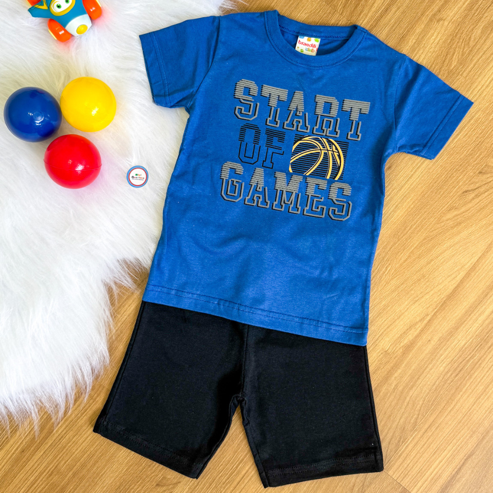 Conjunto Camiseta Manga Curta Azul Games e Bermuda Preta Menino, tamanho 3, 100% algodão, uma escolha perfeita para os nossos Mini Queridos.