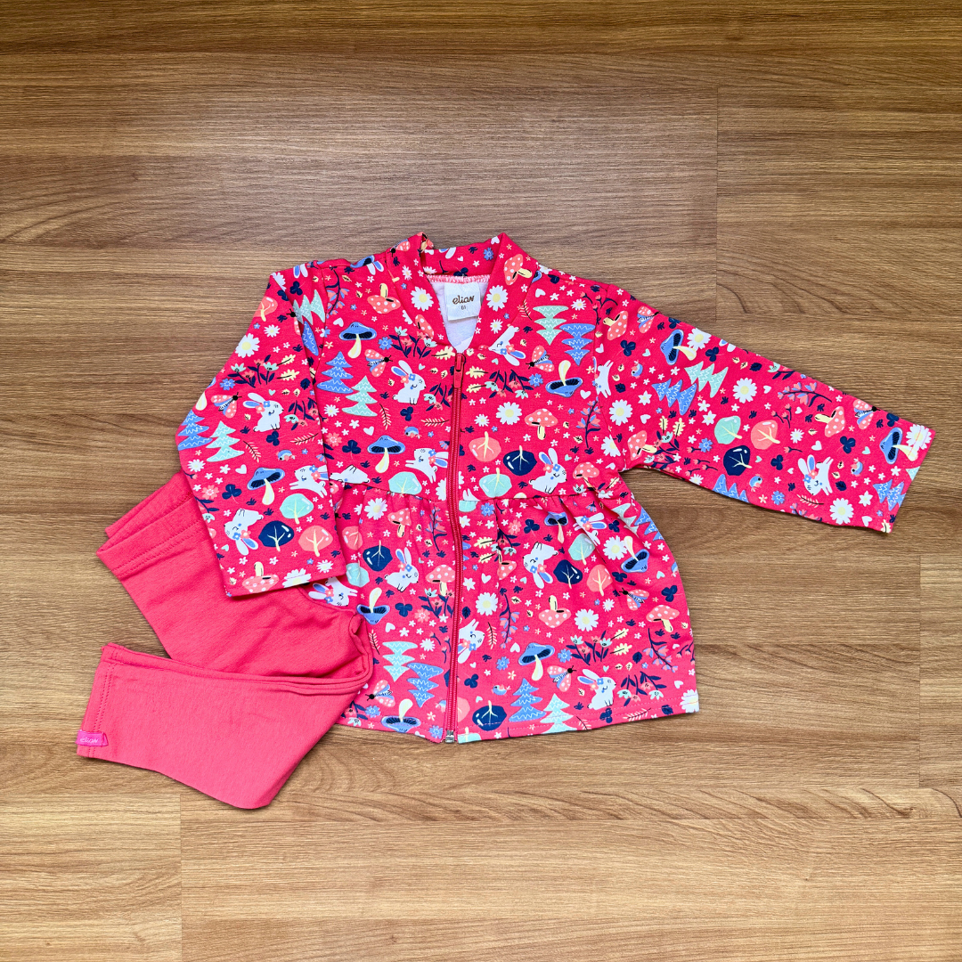 Conjunto Flanelado Elian, Casaco Estampado Com Zíper e Legging Vermelho Claro, Tam 1.