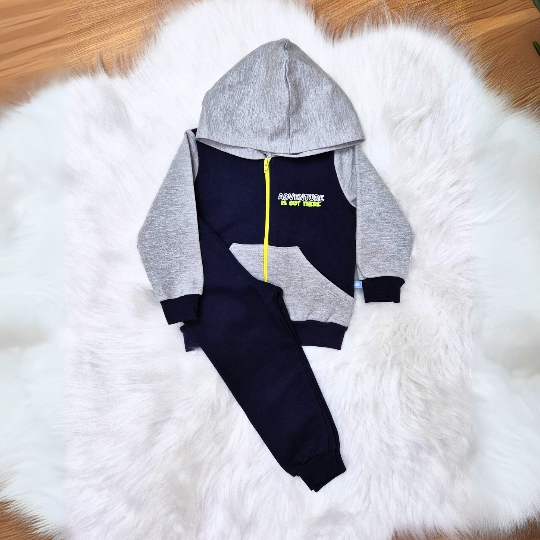 Conjunto Moletom Flanelado Marlan - Blusão Com Zíper e Capuz - Azul Marinho e Cinza -Tam 1.
